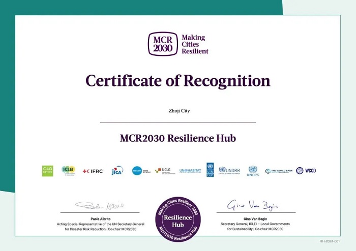 2024年,聯(lián)合國減災(zāi)署公布“世界韌性示范城市”名單,浙江省諸暨市成為繼韓國仁川、菲律賓馬尼拉、韓國蔚山之后,亞太地區(qū)第4個(gè)獲此稱號(hào)的城市,也是全國首個(gè)“世界韌性示范城市”。