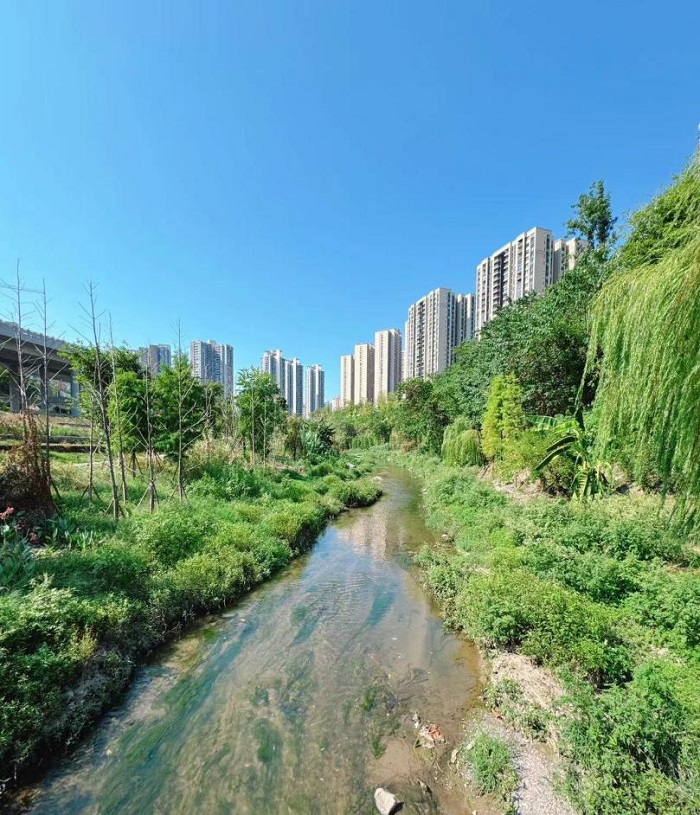 溪水清澈助力城市河道蝶變 污水治好了,河道也得“煥新顏”。項目方清走了河里8.6萬立方米的淤泥,種上了能凈化水質的水生植物,修復了容易滑坡的河岸邊坡,還串聯起高灘巖濕地公園、清水溪生態濕地公園等5個公園,形成了“一溪帶五園”的美景。